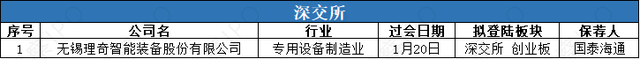 1月20日-1月26日,上交所科创板有1家公司递交上市申请;深交所无公司递交上市申请。